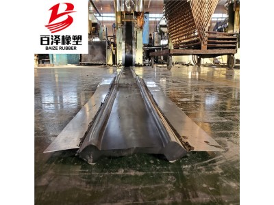 5、鋼邊橡膠止水帶二側的鋼帶安裝時,鋼邊橡膠止水帶在轉角處應按R的半徑要求轉彎,并保持鋼帶平整,使鋼帶與混凝土有效的結合,起到好的止水效果。