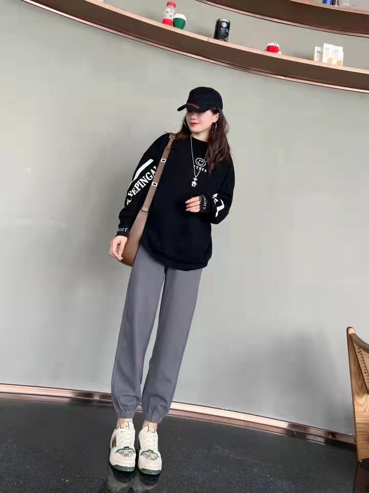 春款長褲顯瘦運動褲,寬松拖地褲,時尚印花,百搭單品。