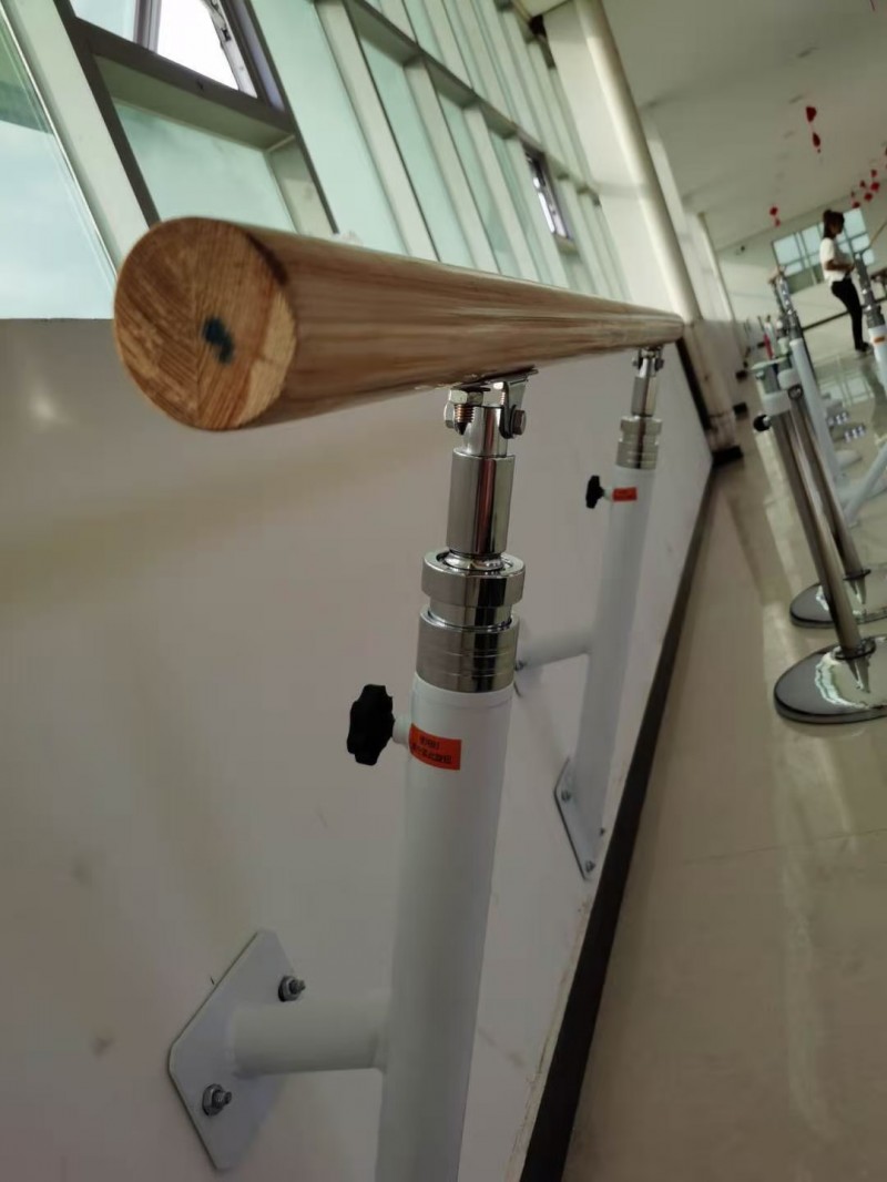 產(chǎn)品材質(zhì):壁掛升降式舞蹈把桿支架,表面白色為噴塑處理立柱采用無鋒鋼管,電鍍處理升降立柱采用實心圓鋼,帶碰珠升降,雙扣鎖實,