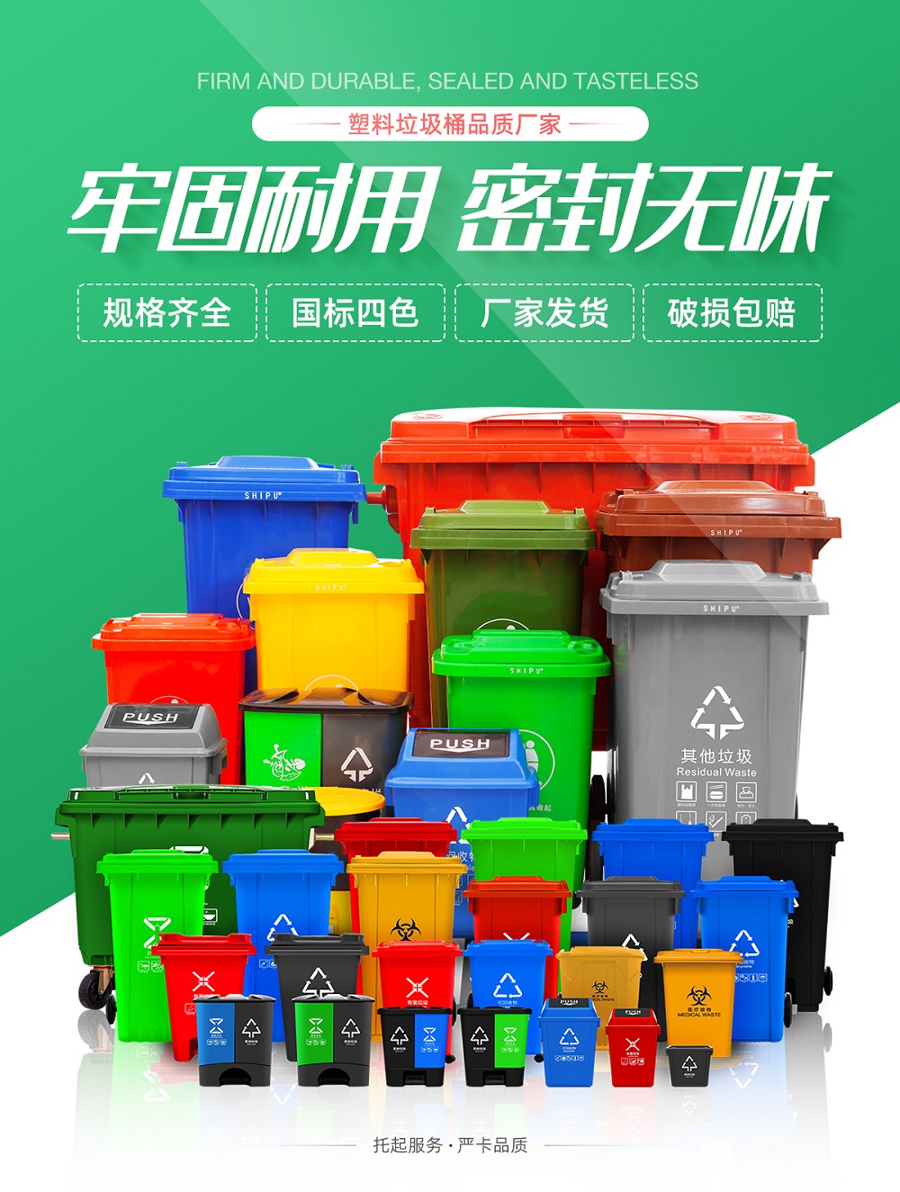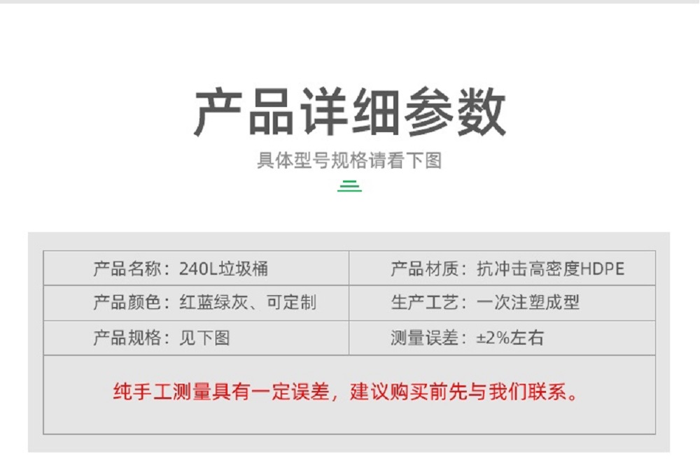 重慶小巨人新材料有限公司是中國(guó)西部較具規(guī)模的從事滾塑、注塑產(chǎn)品,生產(chǎn)及研發(fā)的綜合性塑料制品生產(chǎn)廠家。目前,公司日產(chǎn)垃圾桶20000余個(gè),主要生產(chǎn)及銷售660升、240升、120升、100升、80升、60升、50升等各種型號(hào)規(guī)格的塑料垃圾桶,包括四輪移動(dòng)式塑料垃圾桶、兩輪移動(dòng)式塑料垃圾桶、可掛車式塑料垃圾桶、常規(guī)不掛車式塑料垃圾桶、中間腳踩式塑料垃圾桶、側(cè)邊腳踩式塑料垃圾桶、彈蓋式塑料垃圾桶、分類雙桶可拆卸塑料垃圾桶、以及加厚塑料垃圾桶。采用高密度聚乙烯HDPE為原料,一次注塑成型,結(jié)構(gòu)穩(wěn)定。是中國(guó)大陸同行中產(chǎn)品質(zhì)量服務(wù)好、品種多、相關(guān)產(chǎn)品齊全的優(yōu)勢(shì)企業(yè)。