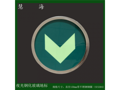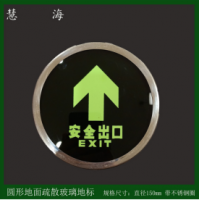 基本說明:該產品采用上8mm下5mm的雙層高強度鋼化玻璃,中間夾圓d=150mm夜光pvc標志,通過夾膠工藝制作合成一體,總尺寸:d=150mm,h=13mm,可按客戶要求加工、定制