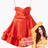 溫碧霞IRENENA服裝品牌露肩吊帶公主裙壓褶抹胸連衣短裙