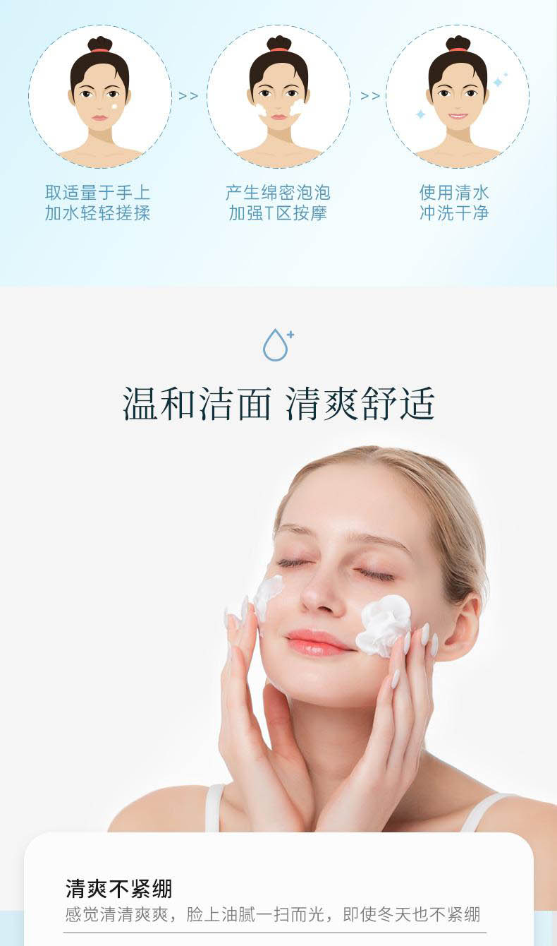 溫和配方:采用氨基酸配方,溫和不刺激,適合每日使用。
