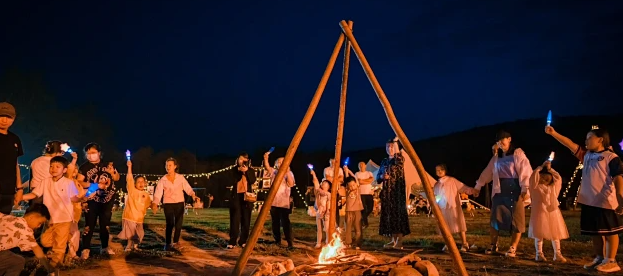 篝火晚會,待狂歡稍歇,大家席地而坐,仰望浩瀚星空。在火光映照下,分享研學一天的心得收獲,帶隊老師也會融入其中,引導大家將篝火晚會的感悟與日常學習相結合。