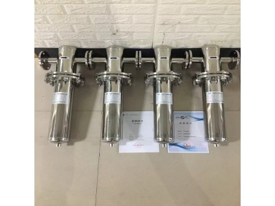 進入除菌過濾器的壓縮空氣至少三級的精密過濾器及干燥機。除油、除水、除塵,油霧濃度應≤0.01PPM,否則將影響除菌濾芯的壽命,到預期的除菌效果。