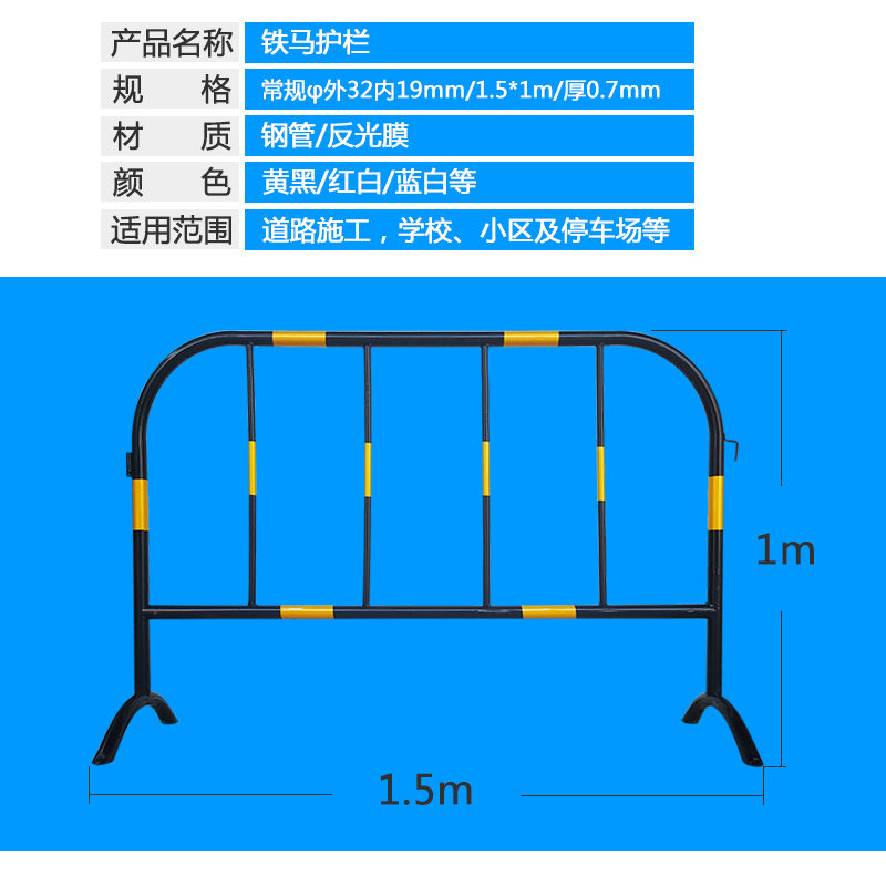 2、鐵馬護欄良好的柔韌性能,基材的剛性和柔性使防護柵欄產品具有較好的抗沖擊性能。