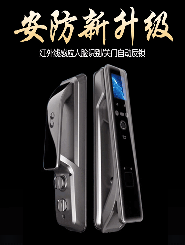 新款全自動智能指紋密碼鎖,人臉、掌紋、指紋、密碼、刷卡、鑰匙、手機app七合一開門方式,無需更換原門鎖體,安裝簡單。全自動指紋鎖采用鋅合金烤漆工藝,抗腐蝕性好。